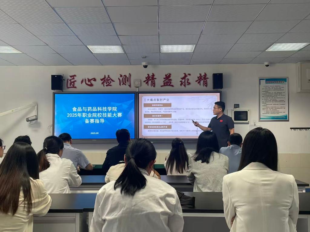9月30日我院举办2025年职业院校技能大赛备赛指导会,教务处副处长李志杰、动物医学院副院长王洪利、我院副院长孙新堂、25年国赛裁判王福红、刘希凤老师及备赛团队参加。